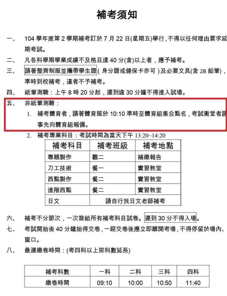 5.補考項目為高一:排球低手托球,高二:排球發球。