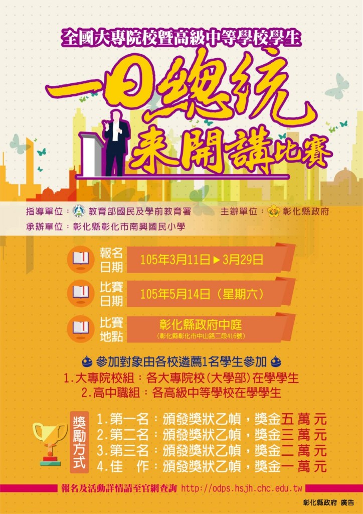 (一)105年5月14日(星期六)上午9時至16時。
