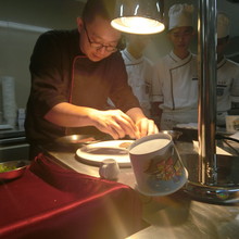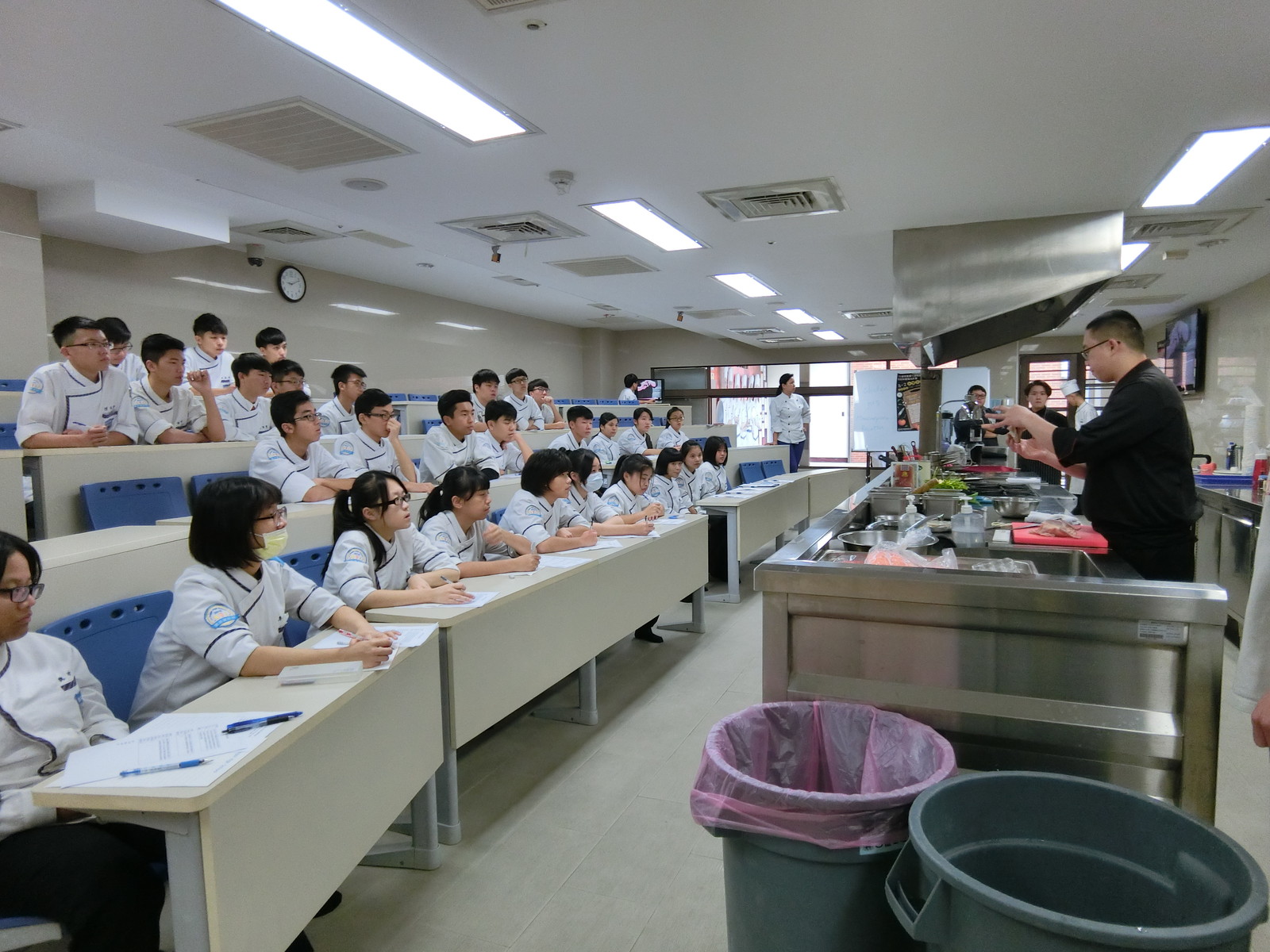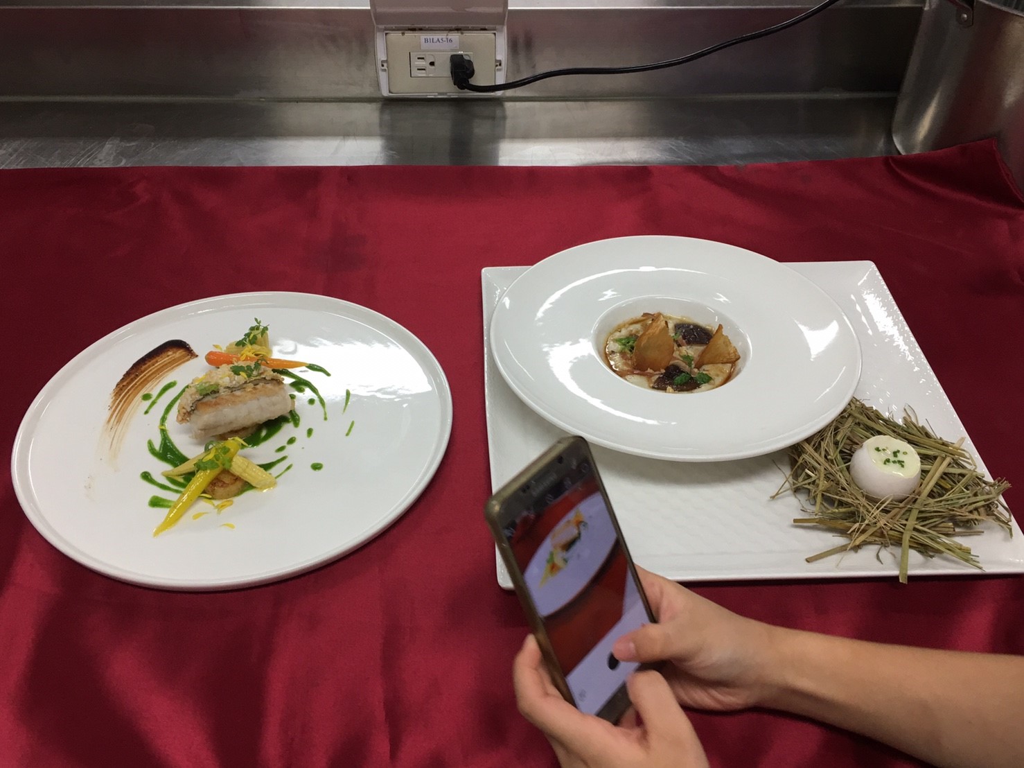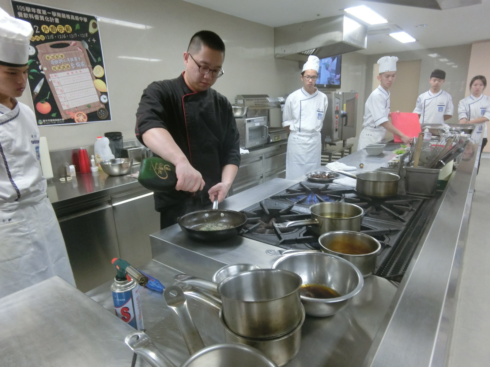 活動日期:105年12月5日~8日 授課講師:李偉捷 師父 活動對象:餐飲科二年級學生 活動主題:105-1餐飲科優質化計畫-外廚示範 105年12月05日 鮭魚塔塔佐蒔蘿奶油醬 蘇格蘭醃鮭魚佐香草奶油 105年12月06日 65度C溫泉但佐香料茄子慕斯 栗子南瓜湯 105年12月07日 油淋馬頭魚佐巴西利奶油醬 油淋馬頭魚佐柚子蛤蠣清湯 105年12月08日 鴨胸佐洛神花醬 香煎鴿子佐燴青豆及肝慕斯 協同教學