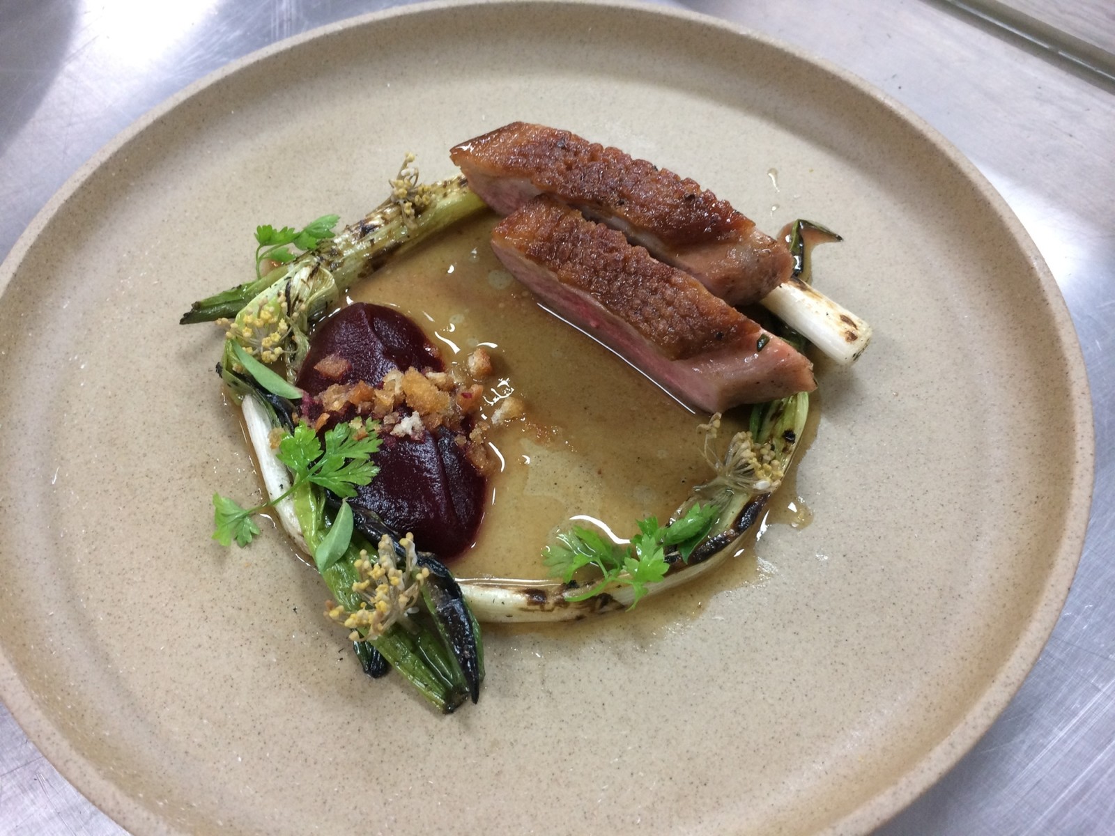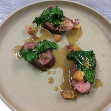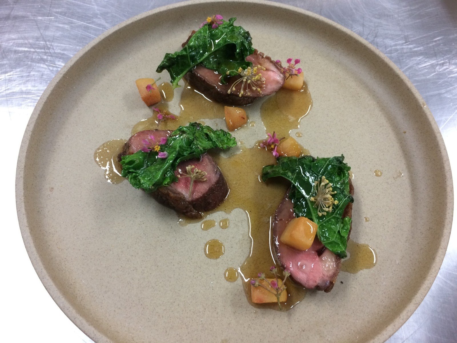 | Duck, kale & apple glaze -duck. Kale. apple jus. Smoke plum. Brown butter |