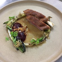 | Duck, beet& pickles -Duck. Beet. Duck fat. Duck jus. Lemon jus. Pickles |