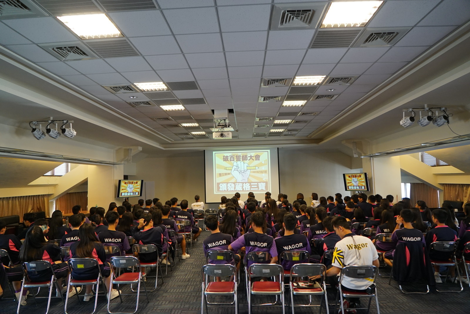 距離明年的大學學測進入破百倒數階段,輔導處於10月18日辦理「學測破百誓師大會」,為即將赴考場的高三學生加油打氣,勉勵考生能在學測大展身手,再創佳績。