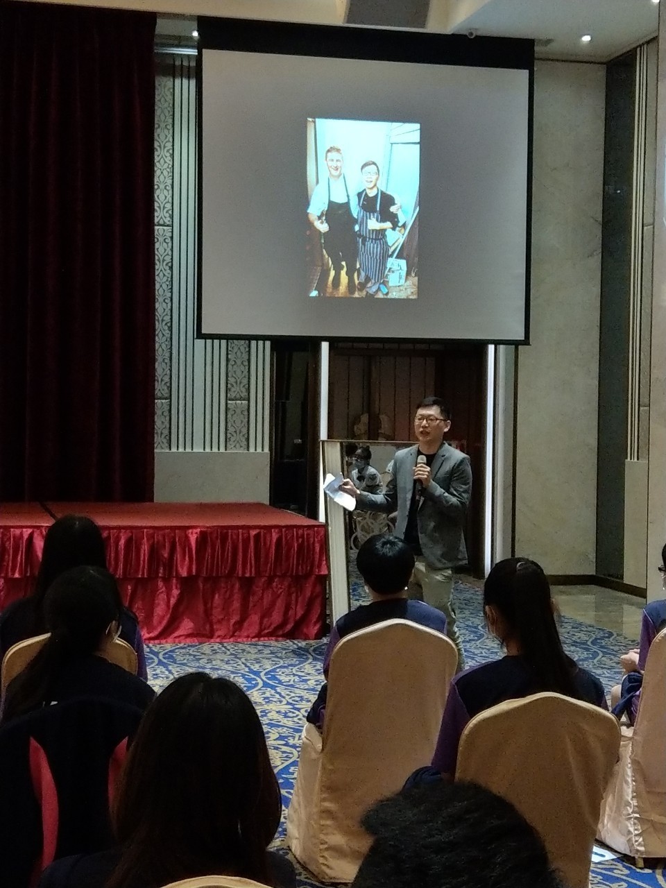 餐飲科名人講座邀請leeli’s主廚李承哲演講「職業與人生的熱情」,被形容很瘋狂、很有想法的李承哲主廚由國外回台創業,在國外餐飲環境極度高壓,這也練就他在創業時磨練的強大抗壓性。因為持續保有熱情,餐飲這條路走來,它甘之如飴即使遭遇挫折,轉變為督促的力量,一直驅使著前進。在決定回到家鄉鹿港後,和同鄉的朋友一起創業,將台灣在地食材融入西式料理方式,經典菜色茴香沙拉取「回鄉」的諧音,道道菜色靈感都來自己己熟悉的故鄉,獨一無二的「台味西式料理」,吃起來特別有台灣味!有人形容它料理看來熟悉,卻充滿創意,今天的座談我們也感受到廚師的熱情和堅持,還有那顆愛著這片土地的心!