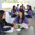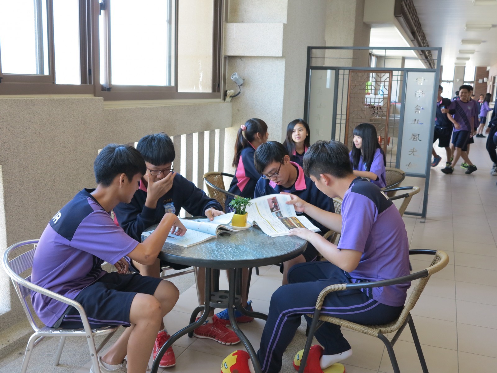 圖書館 為了紓緩師生教學和上課的緊張,學校特地為老師和同學們設置了幾處休憩區,提供大家在課餘談天或休憩的好所在: 在A棟2、3、4樓電梯後中廊、醫護室前穿廊、輔導室前走廊,擺置了休閒桌椅及小盆栽,並以古典隔屏加以區隔,規劃為師生休憩區,另外在5樓圖書館旁中廊布置為教師休憩區。 果然,這幾方小小的港灣獲得大家的青睞,有的好友聊天、有的討論功課、有的師生晤談,小憩片刻,你的表現會更出色喔!