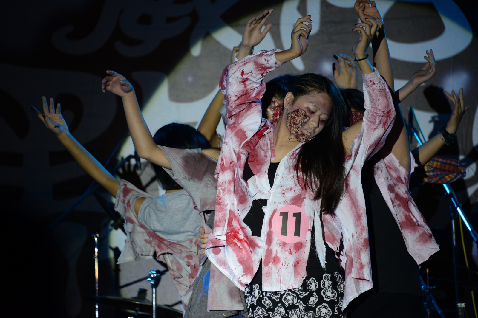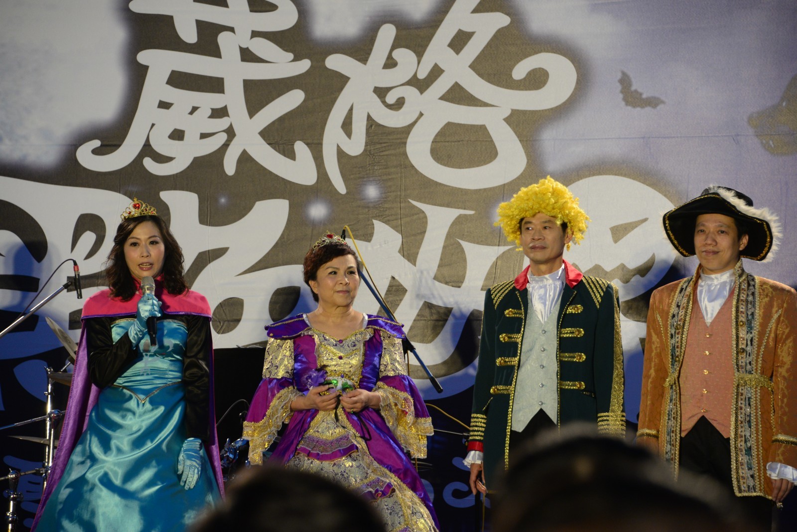 而在穿著上全體師生都玩起大變身,每個人都絞盡腦汁打扮自己,希望成為滿場吸睛的焦點,吸血鬼、撒旦、希臘諸神、殭屍、貞子、小倩互相鬥法,超級瑪莉、小丸子、派大星、海賊王這些卡通人物也四處亂竄,都教授、秦始皇、奇皇后也互相寒暄,更有牛頭馬面在旁虎視眈眈,各方鬼怪魔獸在此大顯神通。除了學生搞怪打扮之外,行政同仁、導師、專任教師、應外科、餐飲科、觀光科老師們也個個放下身段,各自以不同主題變裝走秀,在舞台上表現出平常難得一見的畫面,讓台下的同學們看得直呼過癮。