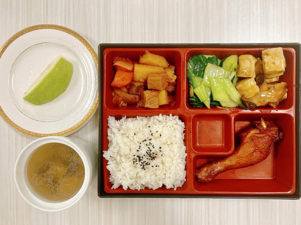 主菜蔗香雞腿匈牙利燉肉副菜鐵板豆腐蒜香青江菜