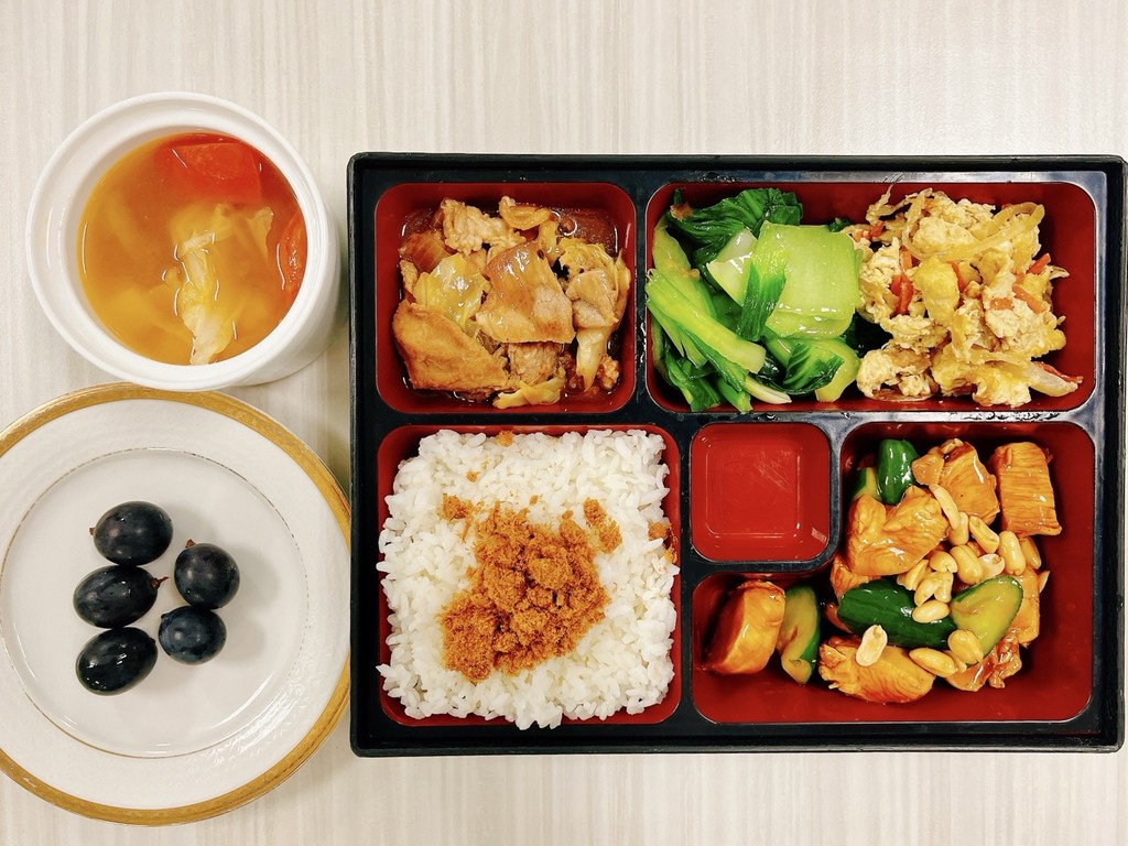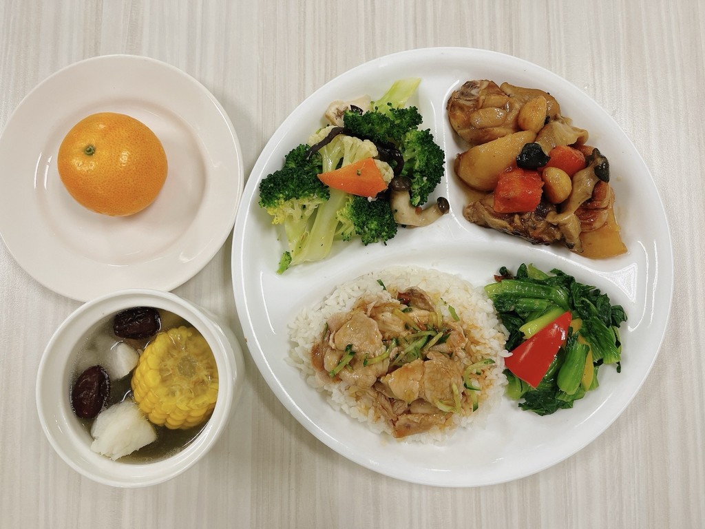 主菜照燒肉片宮保雞丁副菜紅蘿蔔炒蛋蒜香青江菜