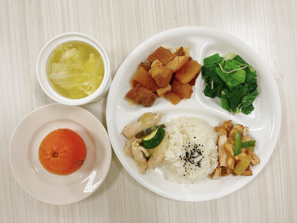 主菜冬瓜燒鴨照燒肉片副菜玉米蒸蛋炒地瓜葉