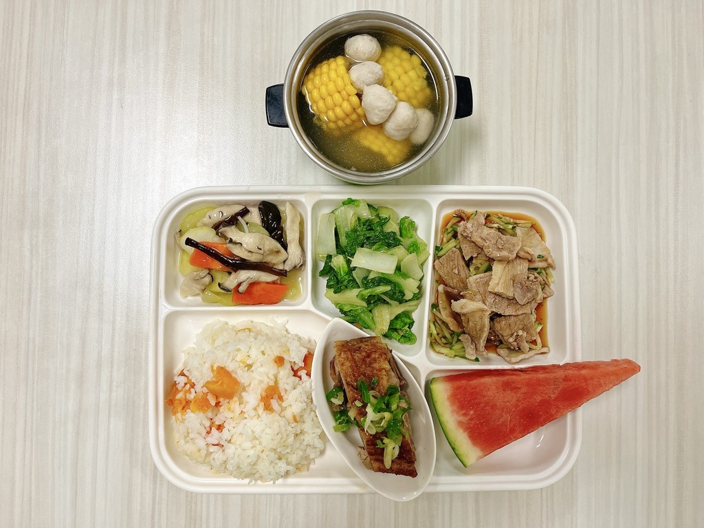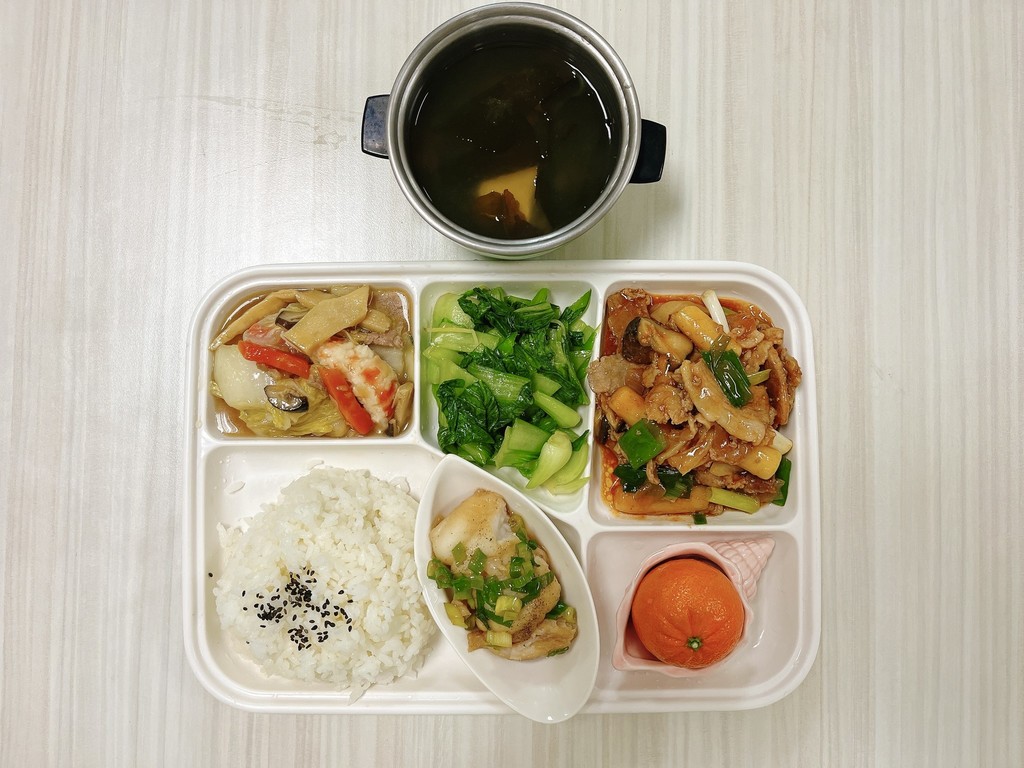 主菜清蒸鮮魚片韓式燒肉副菜芋香白菜蒜香青江菜