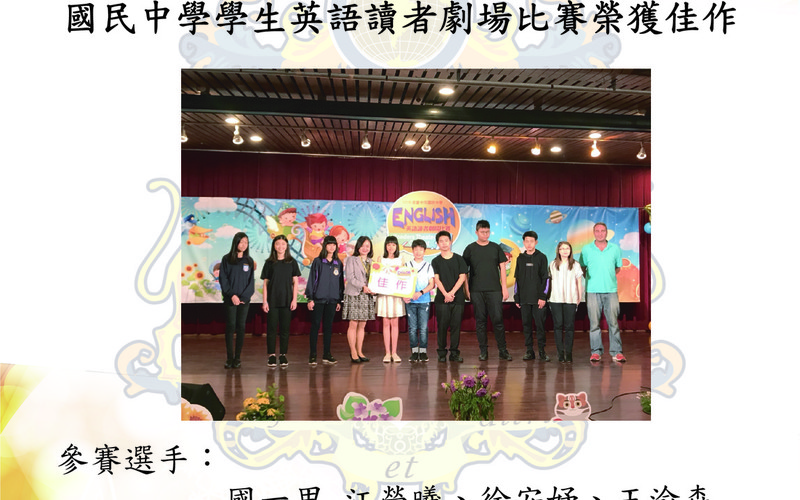 臺中市107年度國民中學學生英語讀者劇場比賽榮獲佳作