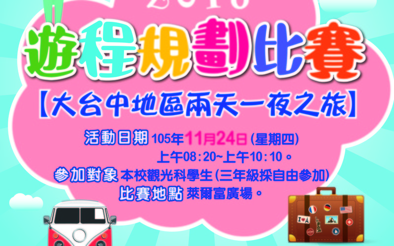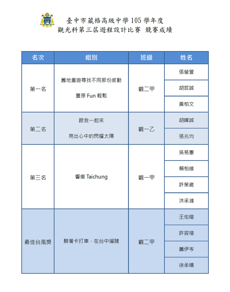 105學年度觀光事業科第三屆葳格盃遊程設計比賽名次