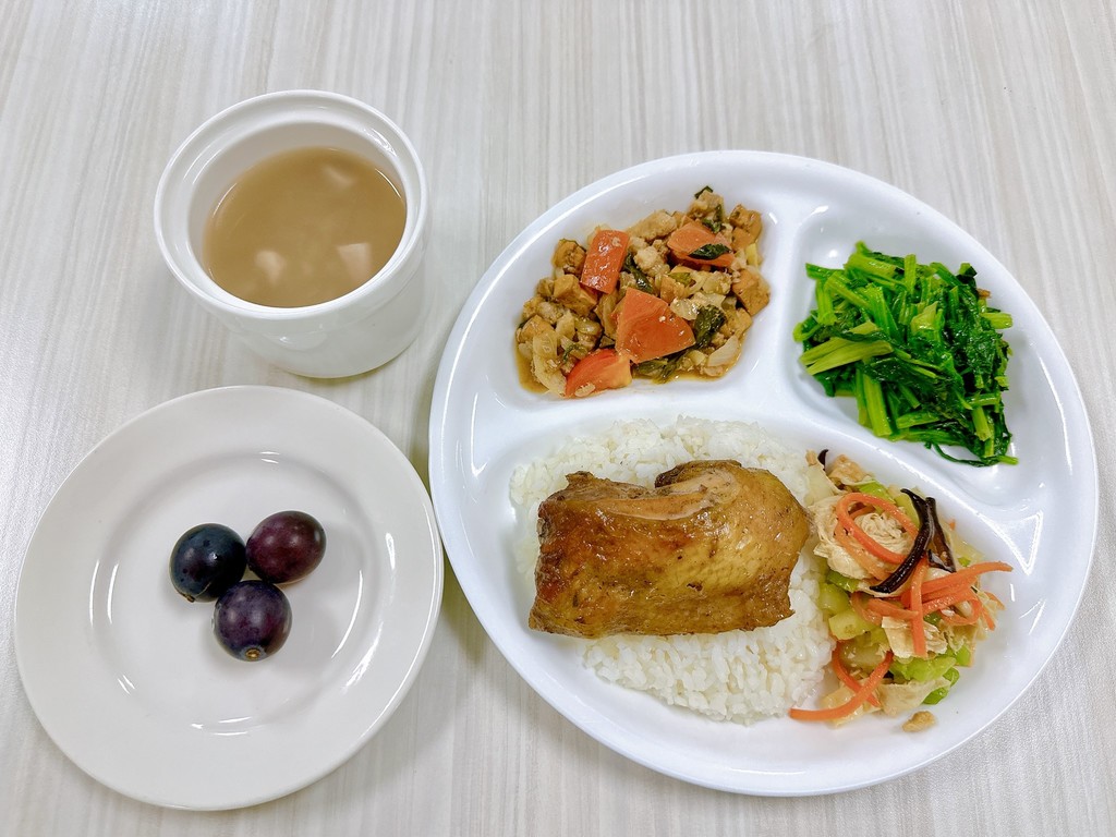 主菜烤雞排泰式打拋肉副菜芹香豆包絲蒜香菠菜