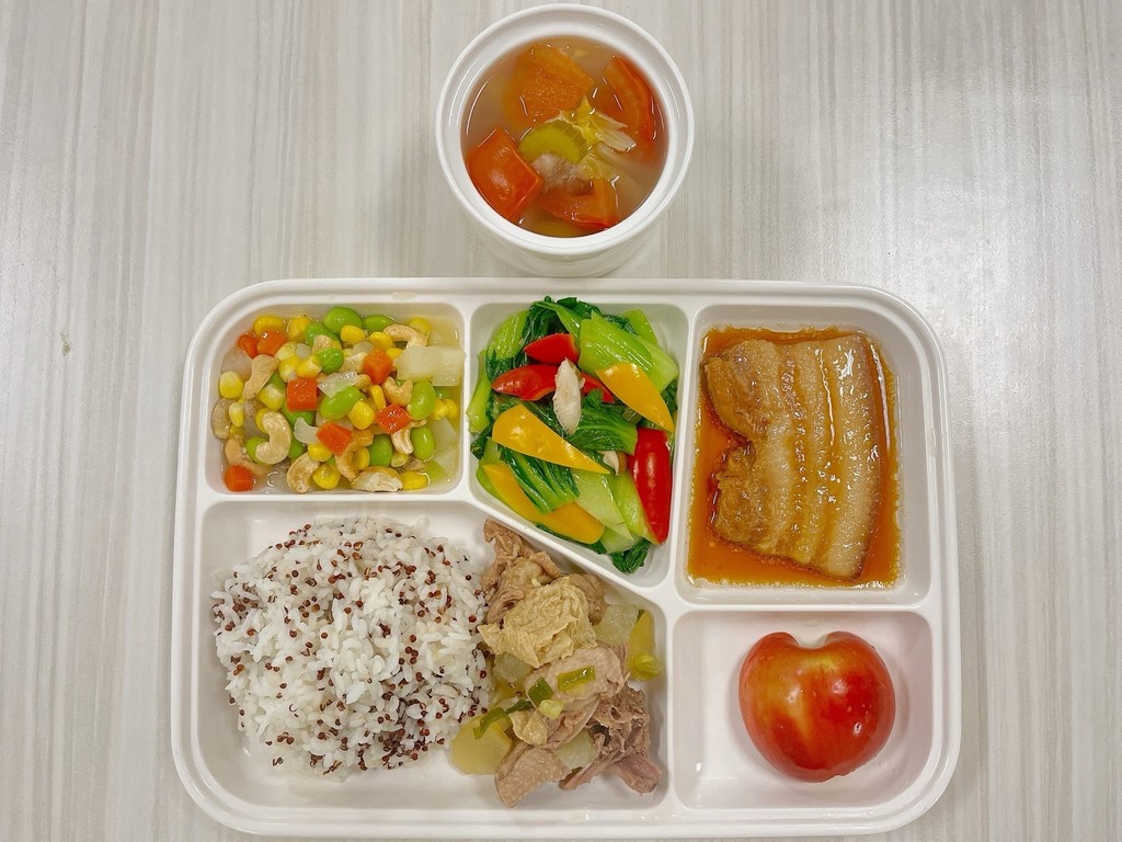 主菜五香爌肉排冬瓜燒鴨副菜腰果炒蔬菜蒜香青江菜