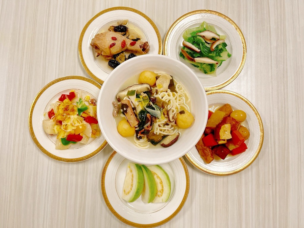 主菜藥膳雞腿起司洋芋副菜什錦滷味蒜香蚵白菜