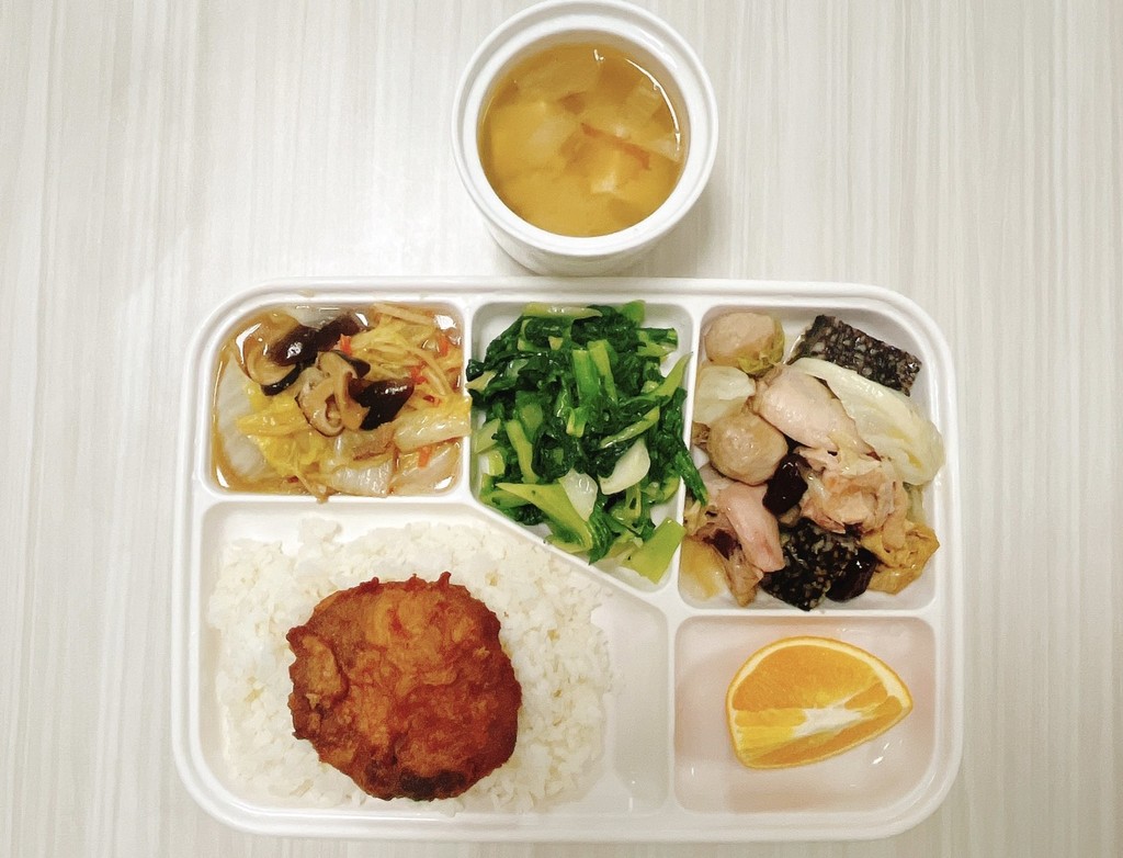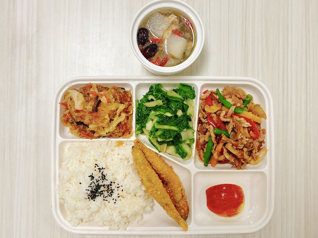 主菜日式豬排麻油雞副菜宜蘭西魯肉蒜香青江菜