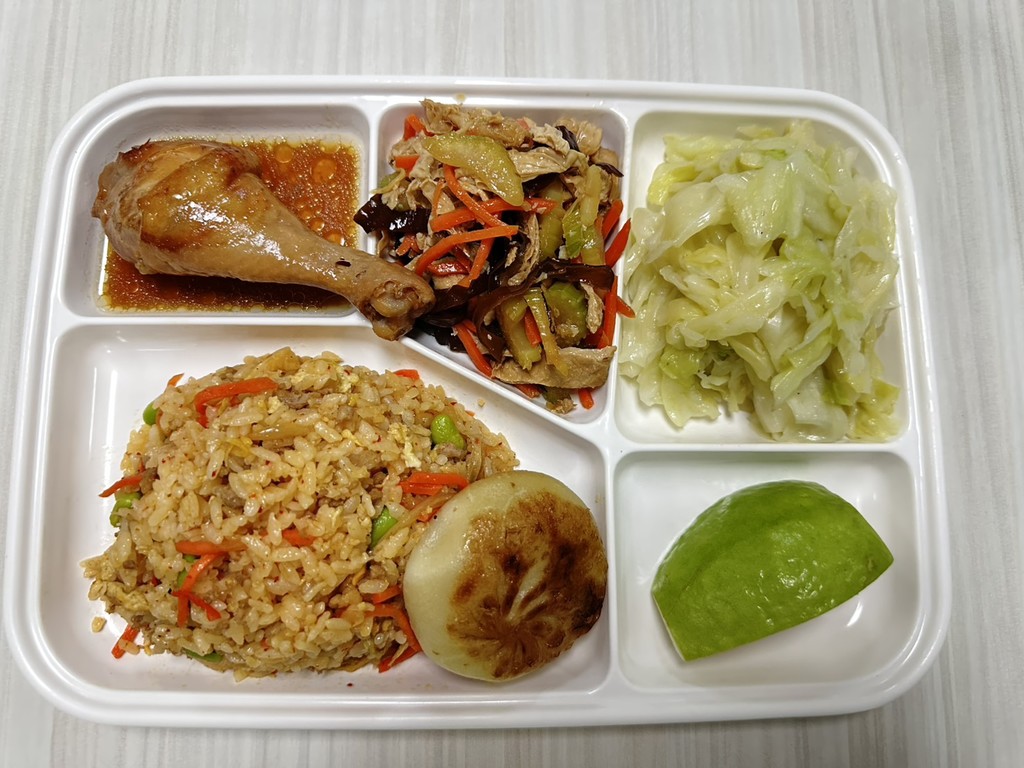 主菜滷雞腿芹香豆包絲副菜烤餡餅蒜香高麗菜