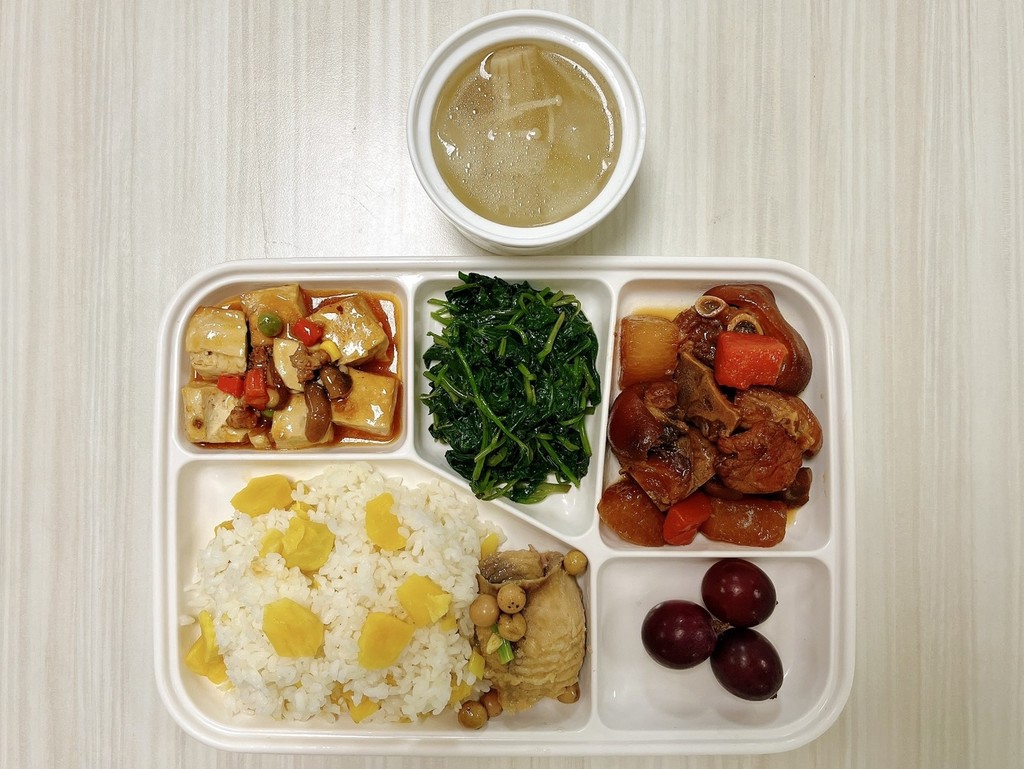 主菜香滷豬腳丁清蒸鮮魚片副菜紅燒豆腐炒地瓜葉