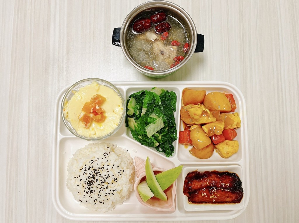 主菜咖哩雞蒲燒鯛魚副菜南瓜蒸蛋蒜香白菜