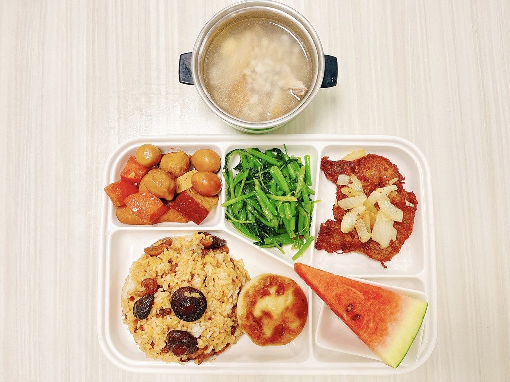 主菜冬瓜滷肉香雞排副菜腰果蔬菜炒地瓜葉