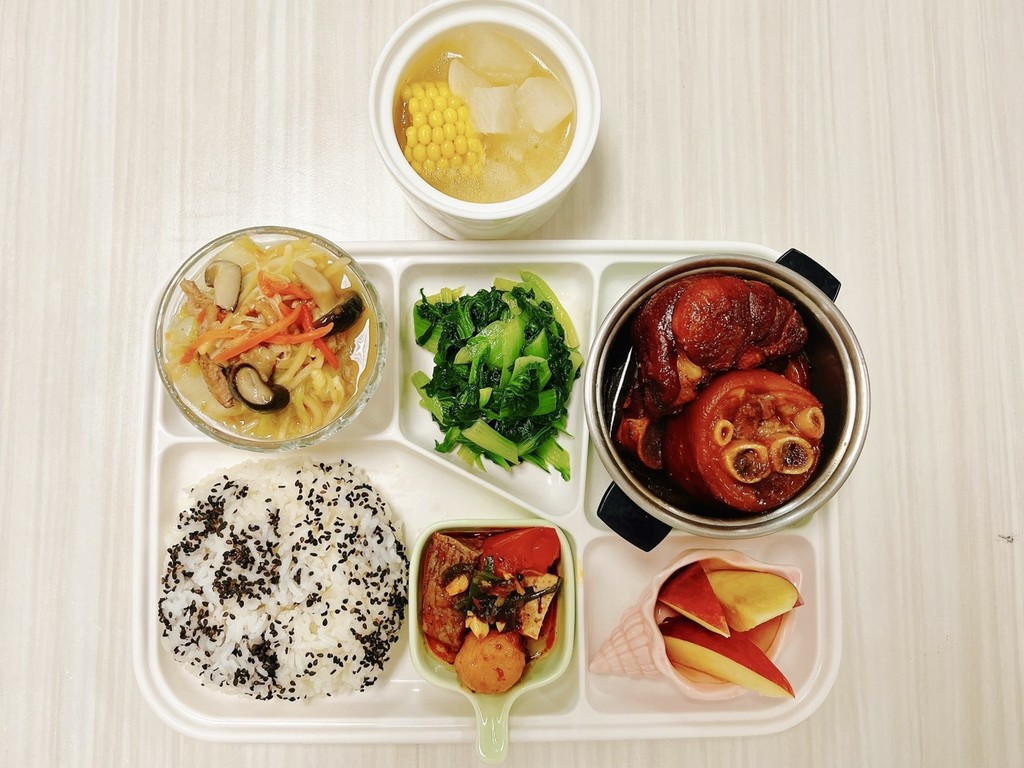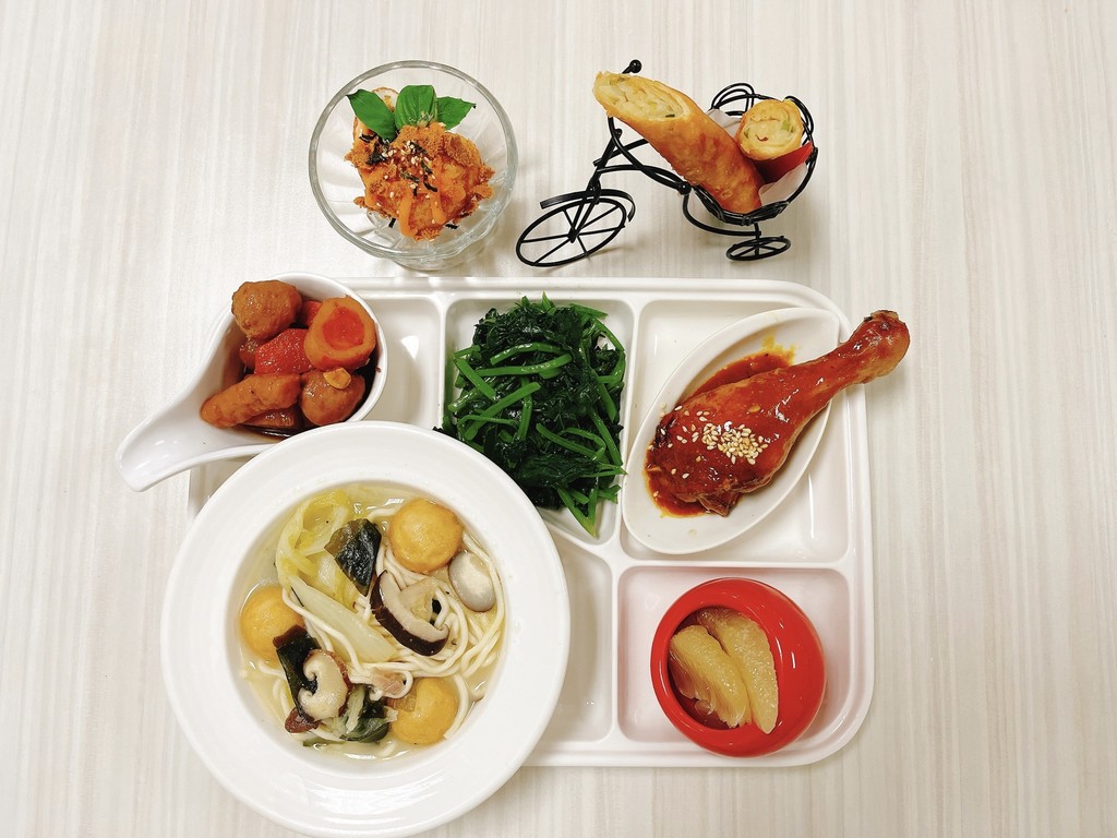 主菜南洋沙嗲雞腿什錦滷味副菜虎皮蛋/蔥花吉拿棒炒地瓜葉