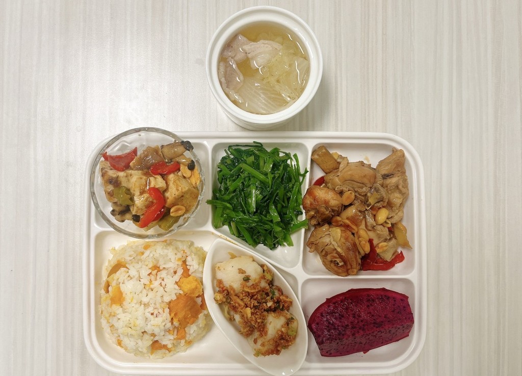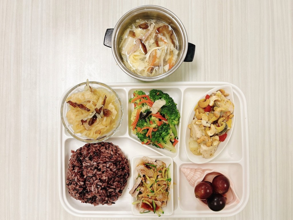 主菜宮保雞丁豆酥鮮魚副菜鐵板豆腐蒜香空心菜