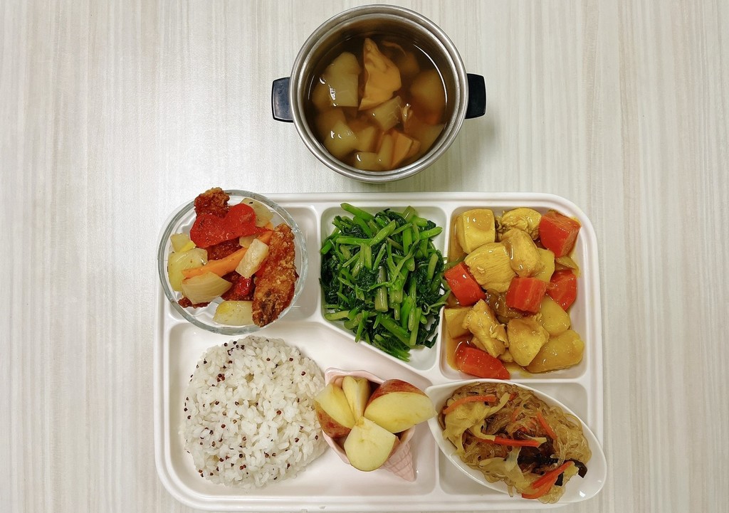 主菜咖哩雞丁糖醋魚丁副菜螞蟻上樹蒜香莧菜