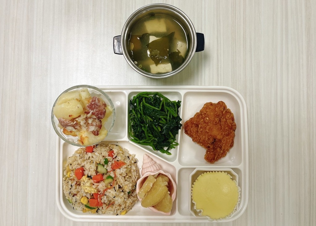 主菜卡拉胸肉排焗烤洋芋副菜馬來糕炒地瓜葉