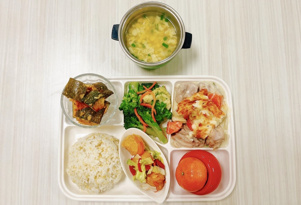 主菜奶油白菜雞義式花枝丸副菜義式焗南瓜炒花椰菜