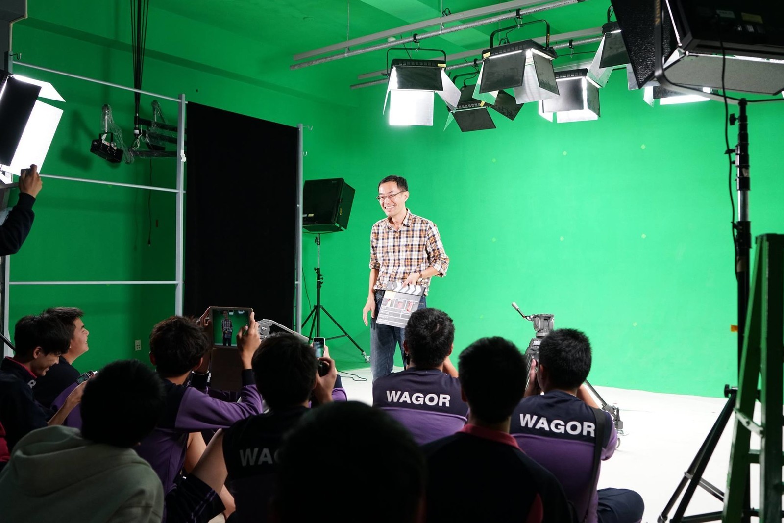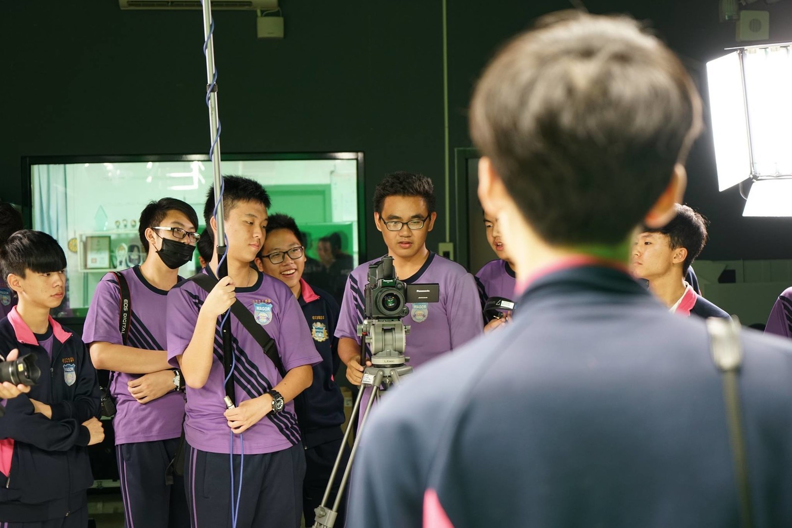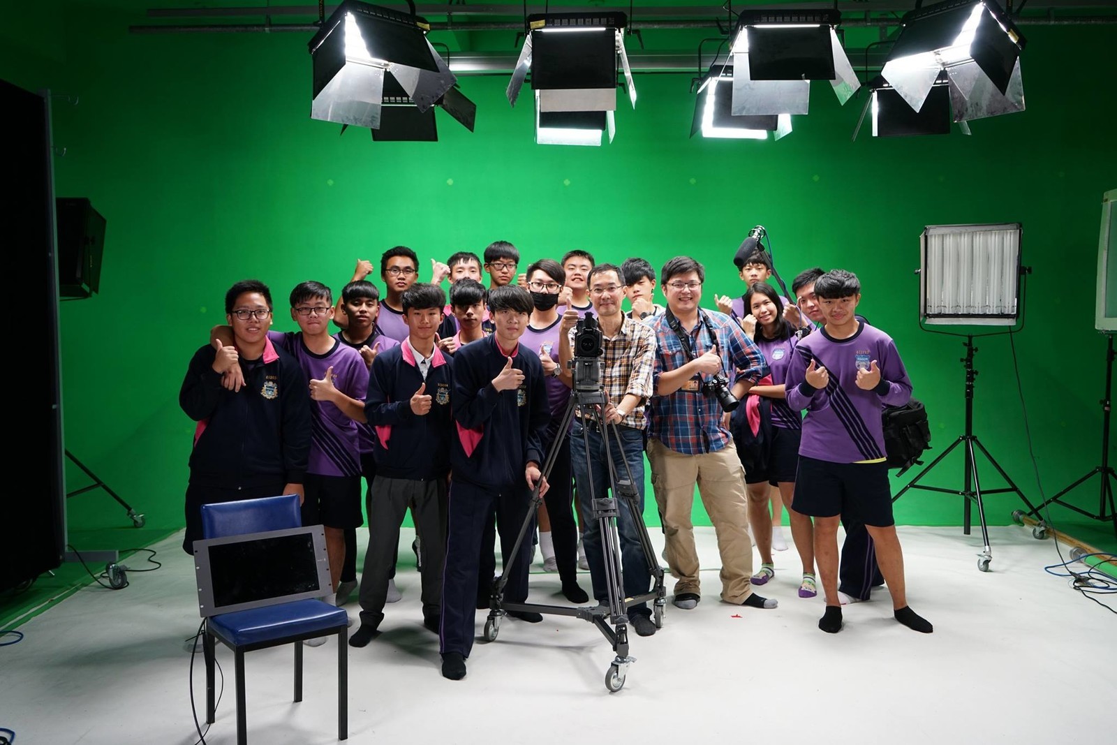 葳格微電影工作坊在106學年度重新招募了新成員,為了讓同學們學習到影片拍攝的知識和技能,指導老師特別和國立台中科技大學 多媒體設計學系曾志峰教授接洽,讓工作坊的成員可以離開學校直接到台中科大的攝影棚上課。