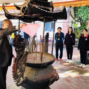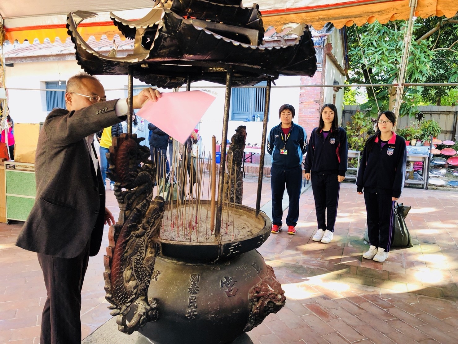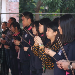活動日期: 2017/12/13 輔導處於106年12月13日辦理高三文昌廟祈福活動,由臺中市葳格高級中學黃開成校長率領,帶領各處室主任、高三導師、高三各班考生代表及學測、統測考生名冊。敬備 蔥(代表聰明)、蒜(代表精算)、蘿蔔(代表好彩頭)、芹菜(代表勤學)以及包子、粽子 (祝福包中),敬拜 文昌帝君 敬祈 庇佑。祝福葳格高級中學高三學生於國曆107年1月26日、27 日參加大學學科能力測驗;107年5月5日、6日參加統一入學測驗,追分成功,金榜題名。