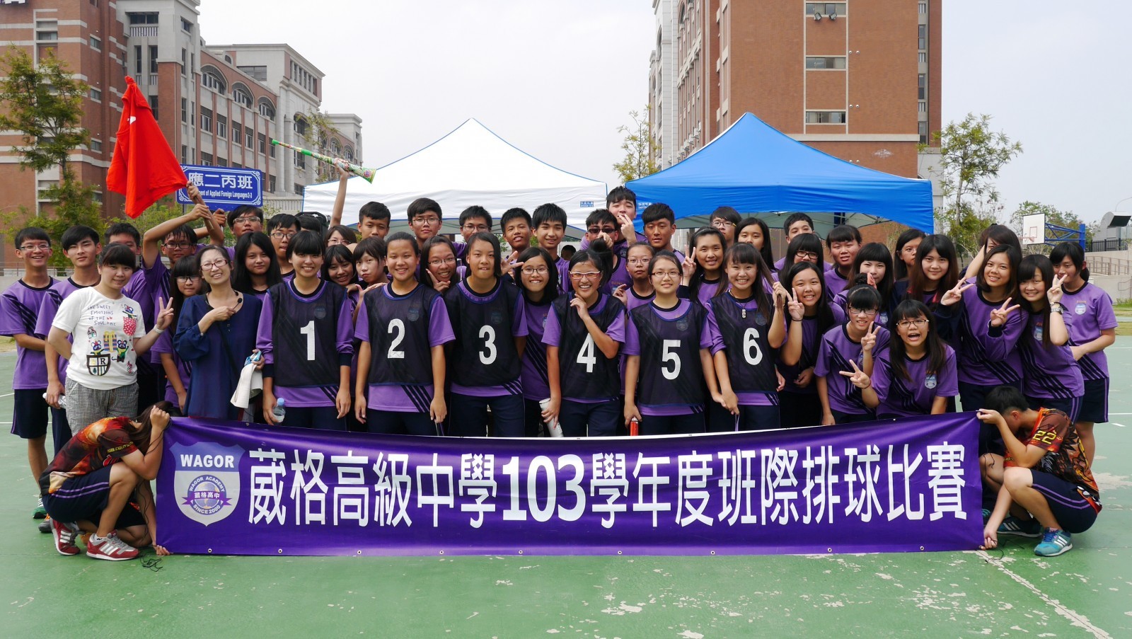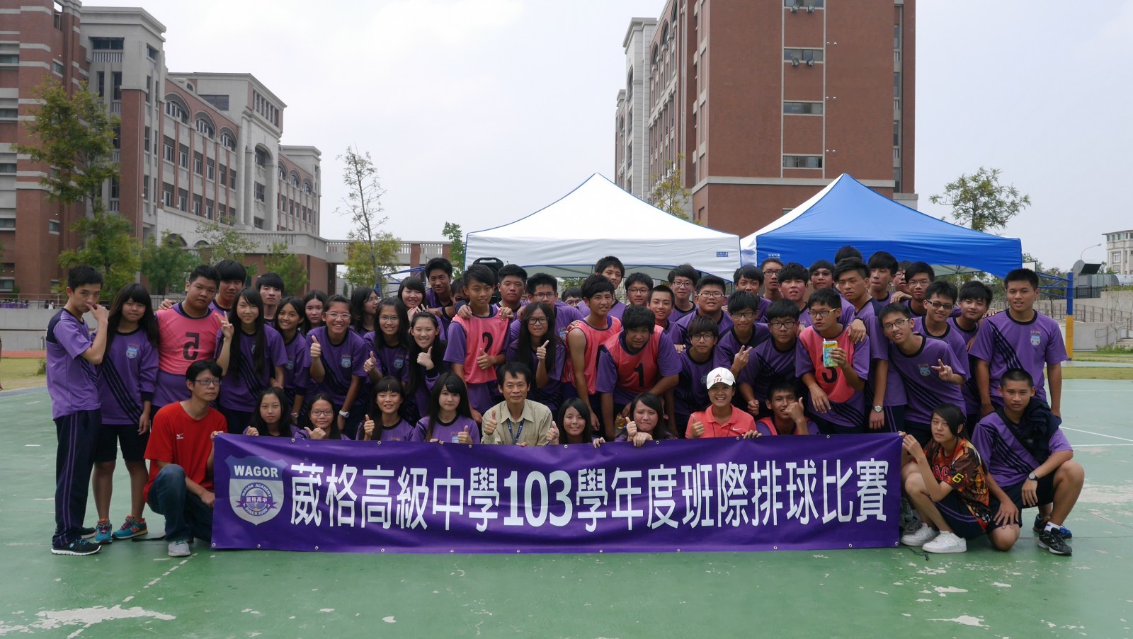 活動日期: 2014/10/01103高二班際排球比賽名次 男子組冠軍-普二乙 亞軍-普二丁 季軍-普二甲 殿軍-觀二丙 女子組冠軍-應二丙 亞軍-應二甲 季軍-普二甲 殿軍-餐二乙 冠軍賽採3戰2勝制 女子冠軍賽 以2:0 由應二丙獲勝 男子冠軍賽 進入決勝局第3局 最後由普二乙獲勝 局數2:1 相簿網址: http://gallery.wagor.tc.edu.tw/album/100