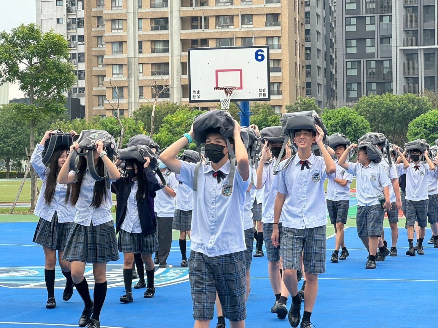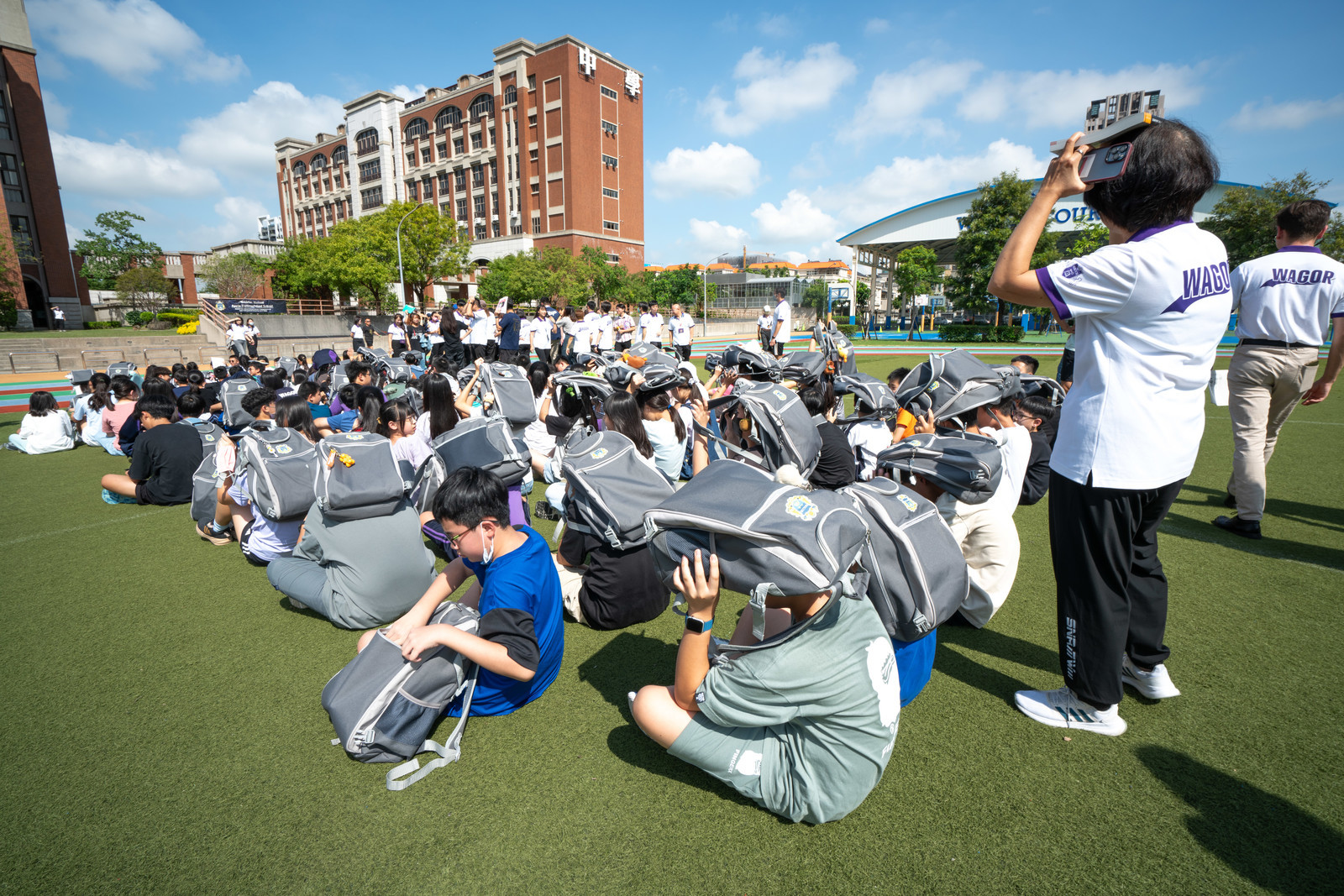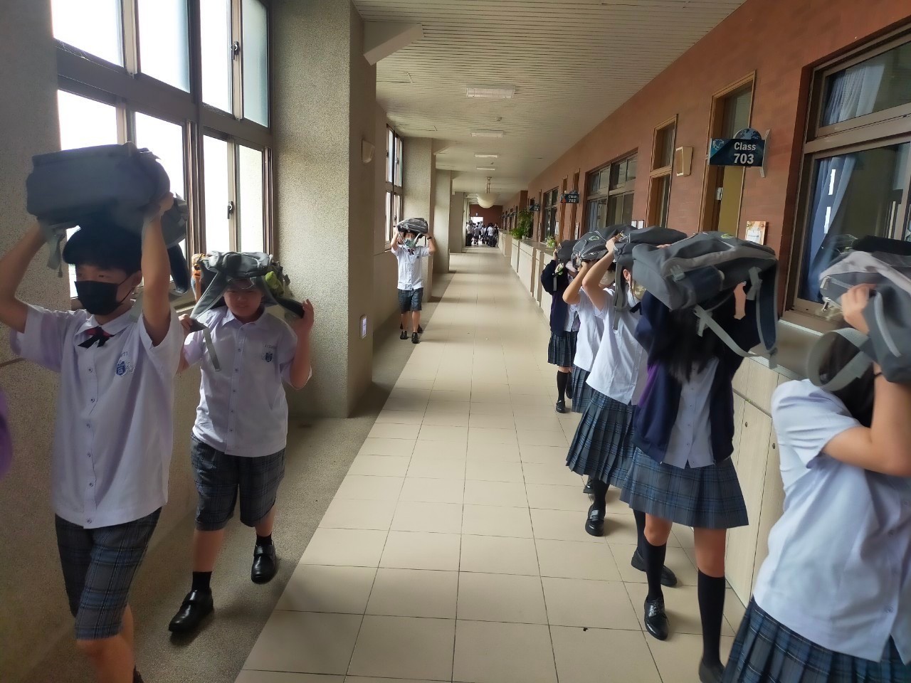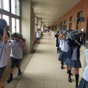 活動日期: 2024/09/20921大地震屆滿25週年,雖然同學們未曾經歷,無法感受強震的威力,但住在位處地震帶的臺灣,時時刻刻都應該有防災的意識和準備 今日上午,隨著國家防災日演習的警報響起,全校師生立即停下手邊動作,合力進行防災演練,依照地震避難三原則,就地「趴下」、「掩護」、「穩住」,隨後運用書包保護頭頸部,依師長的指引依序遠離建築物,前往空曠的操場集合點名。 儘管天氣炎熱,大家仍以認真、謹慎的心態參與防災演練,過程一切順利,我們也全面提升了校園的防災韌性。