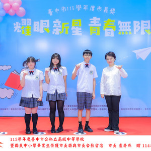 市長獎是對學生在品德、學業、服務及領導各方面長期努力的肯定。受獎同學皆透過班級推薦與遴選,展現優異表現,成為同儕楷模。感謝導師、家長一路的陪伴與鼓勵,讓學生在成長道路上穩健前行,綻放光彩。