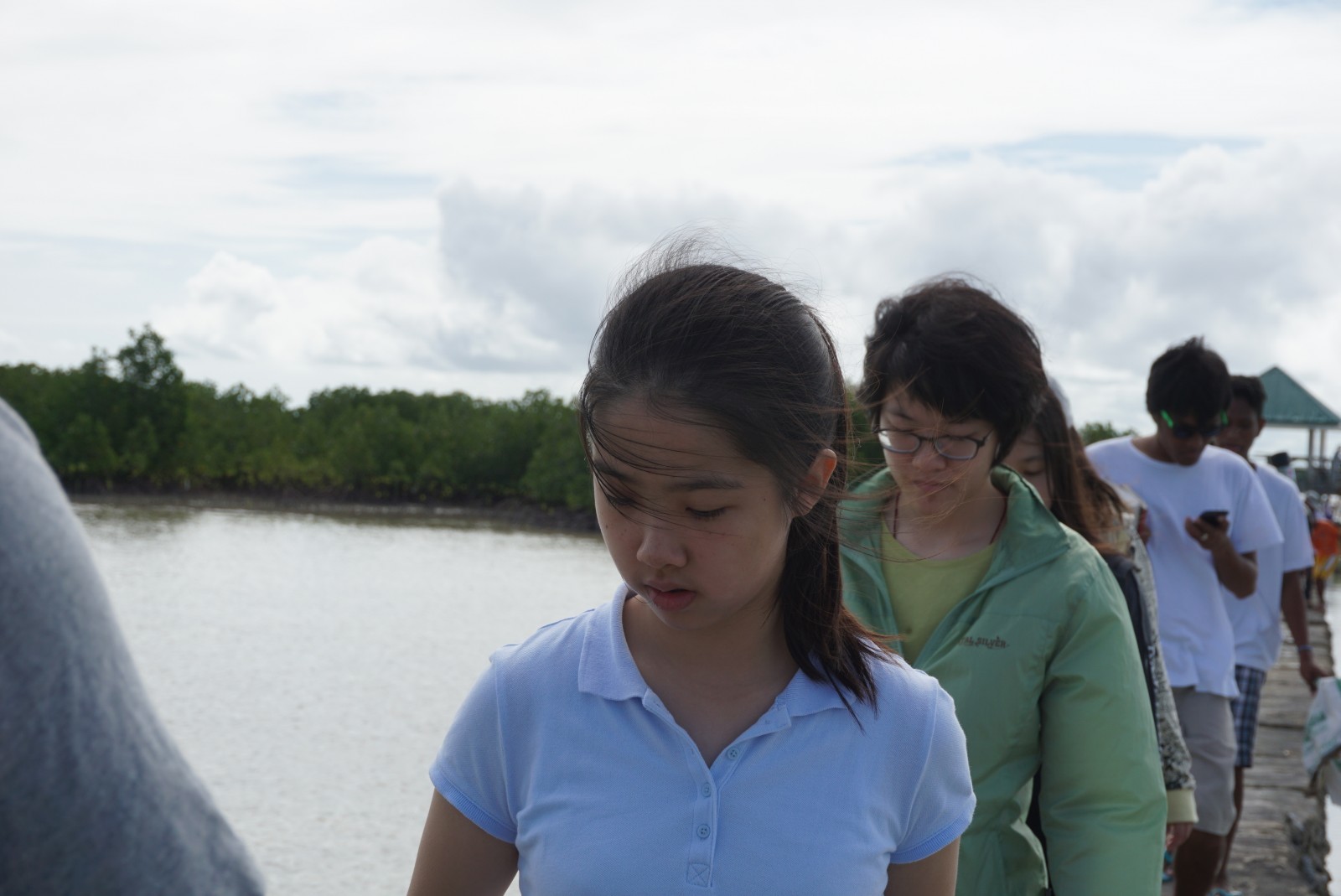 在房屋修繕告一段落後,我們立刻展開紅樹林的保育工作。 Olango 島原本擁有豐富的海洋生態系統,但是當地居民習慣砍伐紅樹林來當作建材與柴薪使用,紅樹林生態已經遭到嚴重破壞。紅樹林除了是海洋生物鏈中很重要的一部分外,還有防風消浪,淨化海水與空氣的功能。紅樹林的保育不僅對Olango島上的居民很重要,也是珍愛地球的一種表現。在當地志工的帶領下,我們採集成熟水筆仔幼苗,再將幼苗種植於紅樹林保育區。
