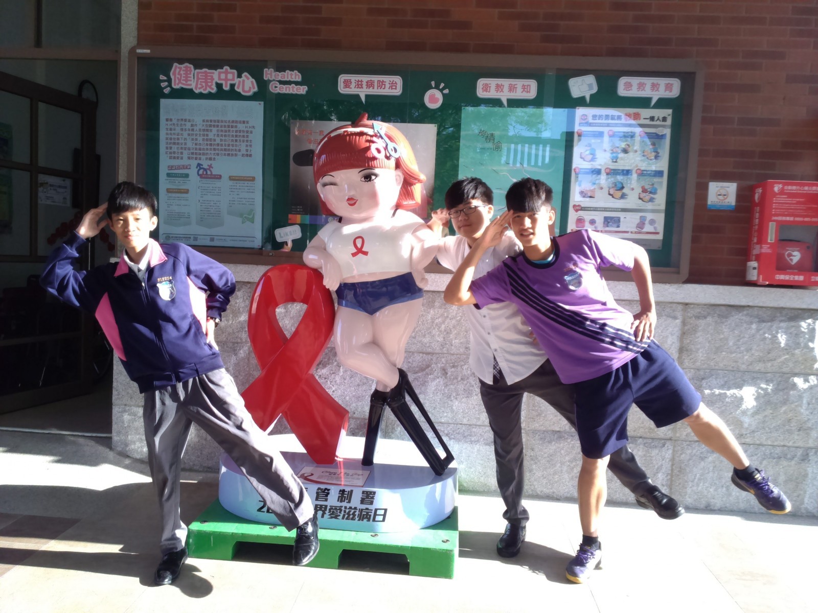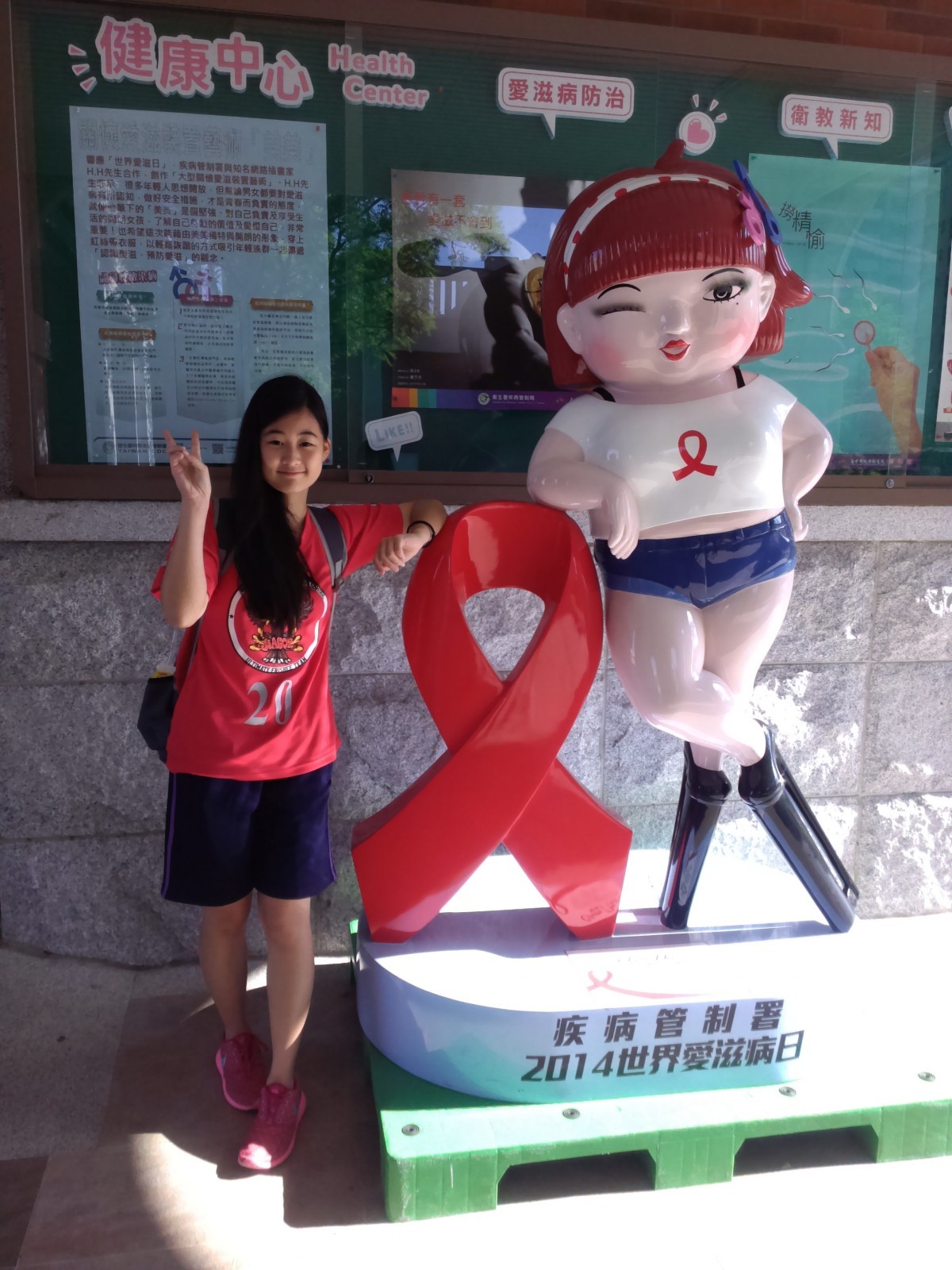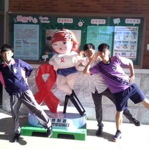衛生福利部疾病管制署與知名網路插畫家H.H先生合作,將筆下擁有廣大粉絲的人物「美美」結合愛滋防治概念創作成「大型關懷愛滋裝置藝術」,於104年4月13日至4月27日巡迴至台中市葳格高中展出,用最潮流的方式宣導愛滋病防治,呼籲防治愛滋、關懷愛滋感染者。