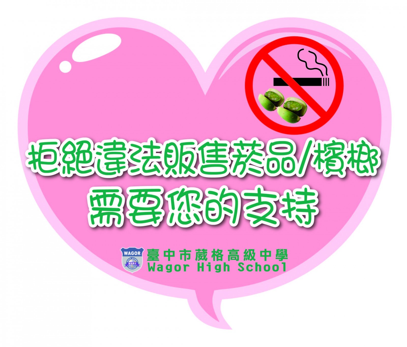 世界衛生組織(WHO)於西元1987年創建了「World No-Tobacco Day」(世界無菸日);且自1989年起明訂每年的5月31日為「世界無菸日」。葳格高中透過推動無菸/無檳友善校園宣導活動,將拒絕抽菸、拒吸二手菸、拒嚼檳榔的觀念推展到社區,結合社區力量以發揮最大功效。
