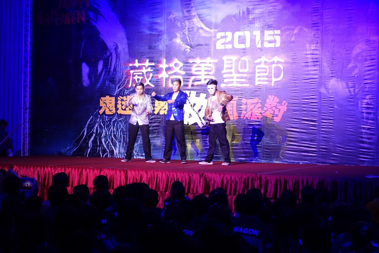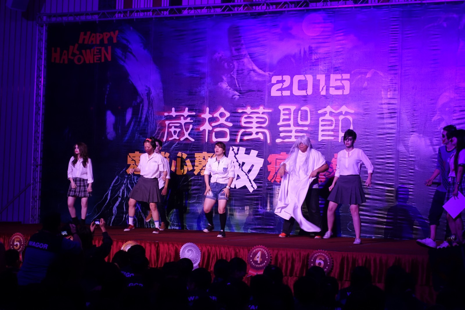 萬聖節狂歡派對是葳格高中每年最盛大節慶大戲,今年第四年舉行,30日正式於B2學生活動中心正式引爆! 除了現場各式燈光交織成神祕氣氛外,學生創意走秀裝扮依舊是活動重頭戲,葳格的學子們總是在各項活動中,積極參與並發揮淋漓盡致,使本校優質化計畫「舞動青春,拒菸反毒」順利推動。