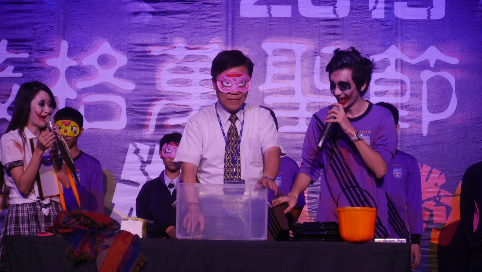 此次活動,加入了由外師引領的知識家戲劇引導,學生在享受歡樂之餘,了解萬聖節由來與中西方文化的差異,讓活動更充滿教育意義,高中部 謝慶宗 校長也一起與學生同樂,參與應景的恐怖箱猜謎遊戲,搭配現場音效氛圍圍繞,讓活動緊張、懸疑、恐怖High到最高點。Happy Halloween!