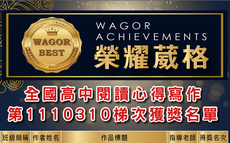 全國高中閱讀心得寫作 第1110310梯次獲獎名單