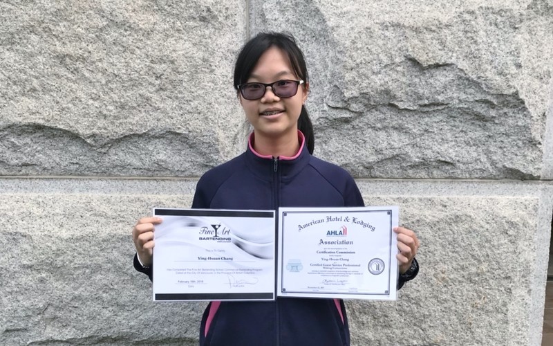 賀!觀三甲班 張瑩萱同學考取「加拿大溫哥華調酒師證照」及「American Hotel & Lodging Association,AH&LA證照」