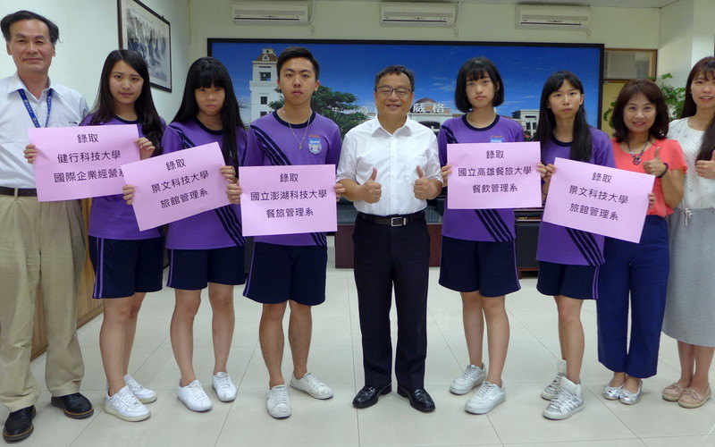 賀本校餐旅群107學年全國科技繁星榮獲佳績。 周宜湄 國立高雄餐旅大學 餐飲管理系 何鑫宇 國立澎湖科技大學 餐旅管理系 吳佩珊 景文科技大學 旅館管理系 劉佳柔 景文科技大學 旅遊管理系休閒遊憩管理組 吳享凌 遠東科技大學 旅遊事業管理系旅遊經營組 周雯琳 健行科技大學 國際企業經營系航空服務與行銷企劃組