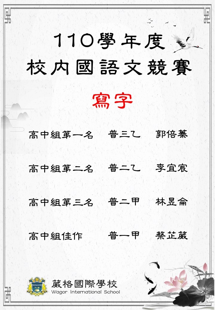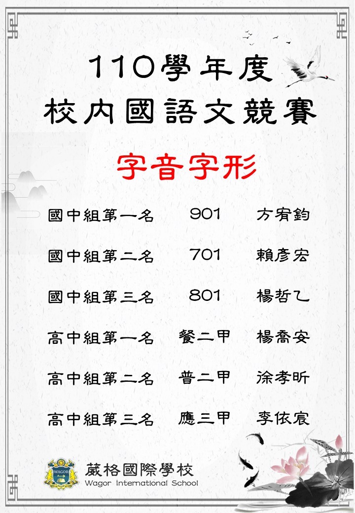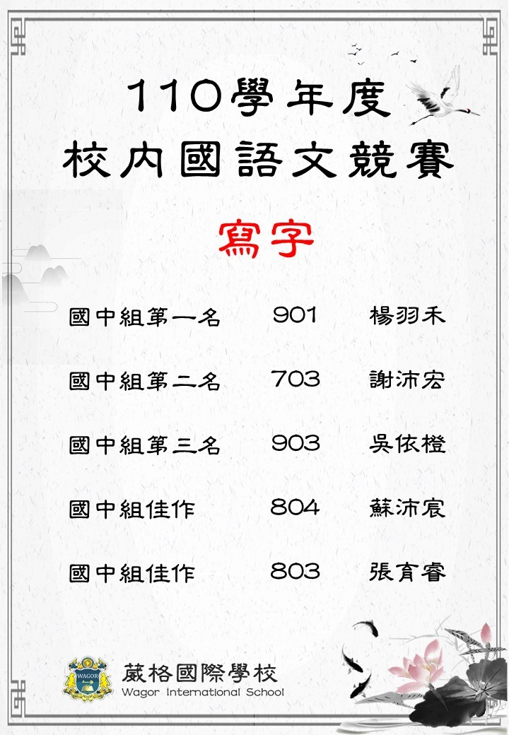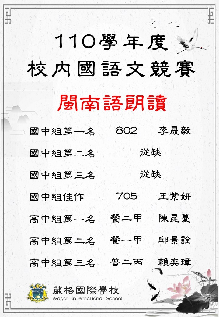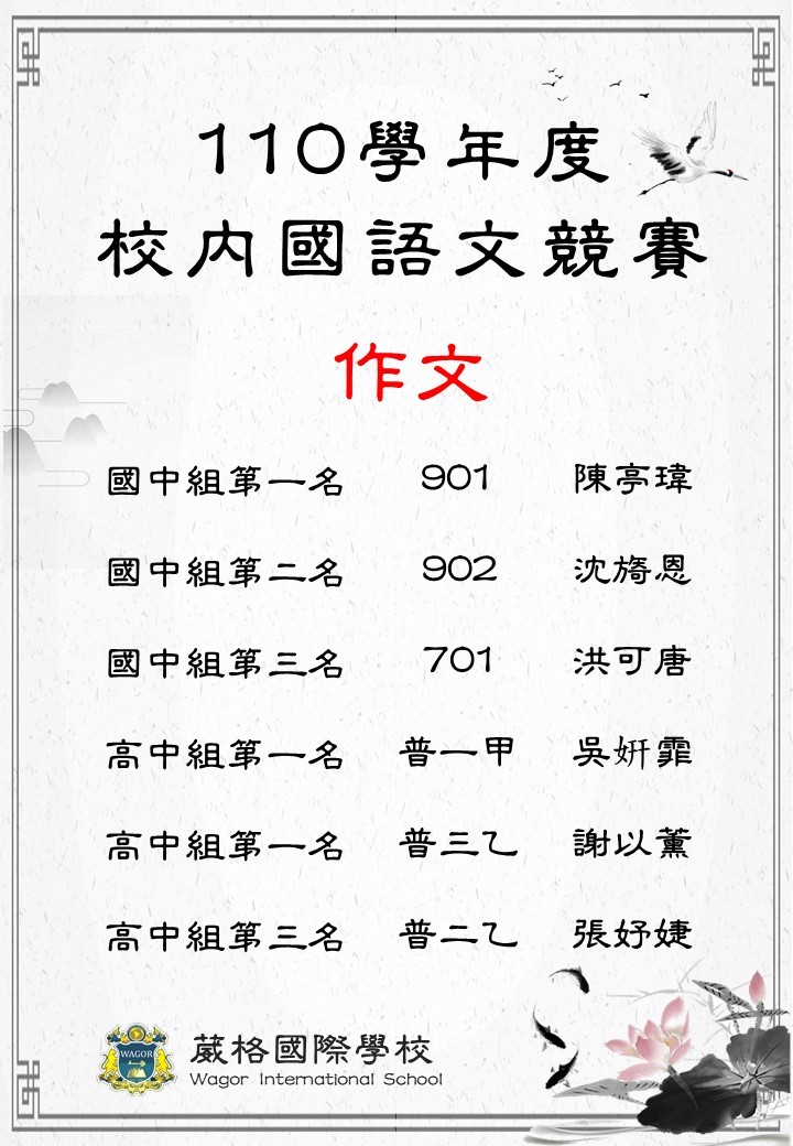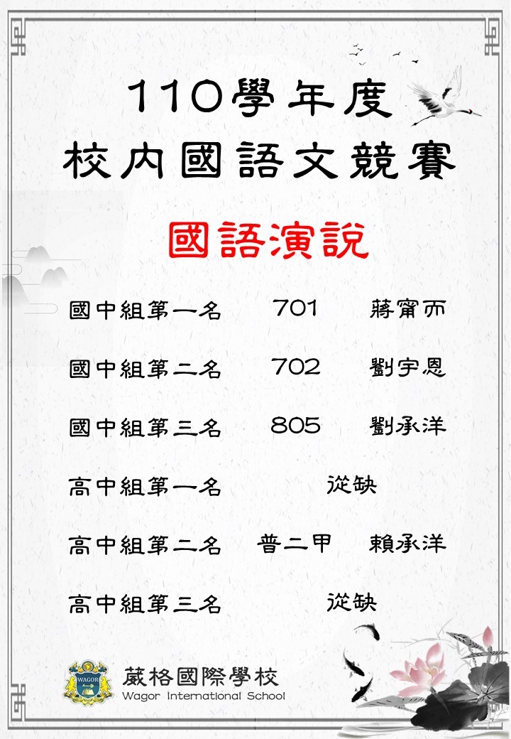 110學年度校內國語文競賽得獎名單