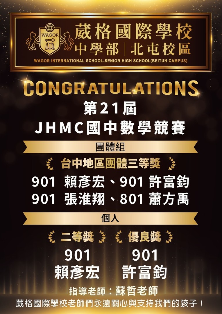 第21屆JHMC國中數學競賽榮獲佳績