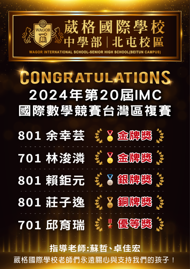2024第20屆IMC國際數學競賽台灣區複賽佳績