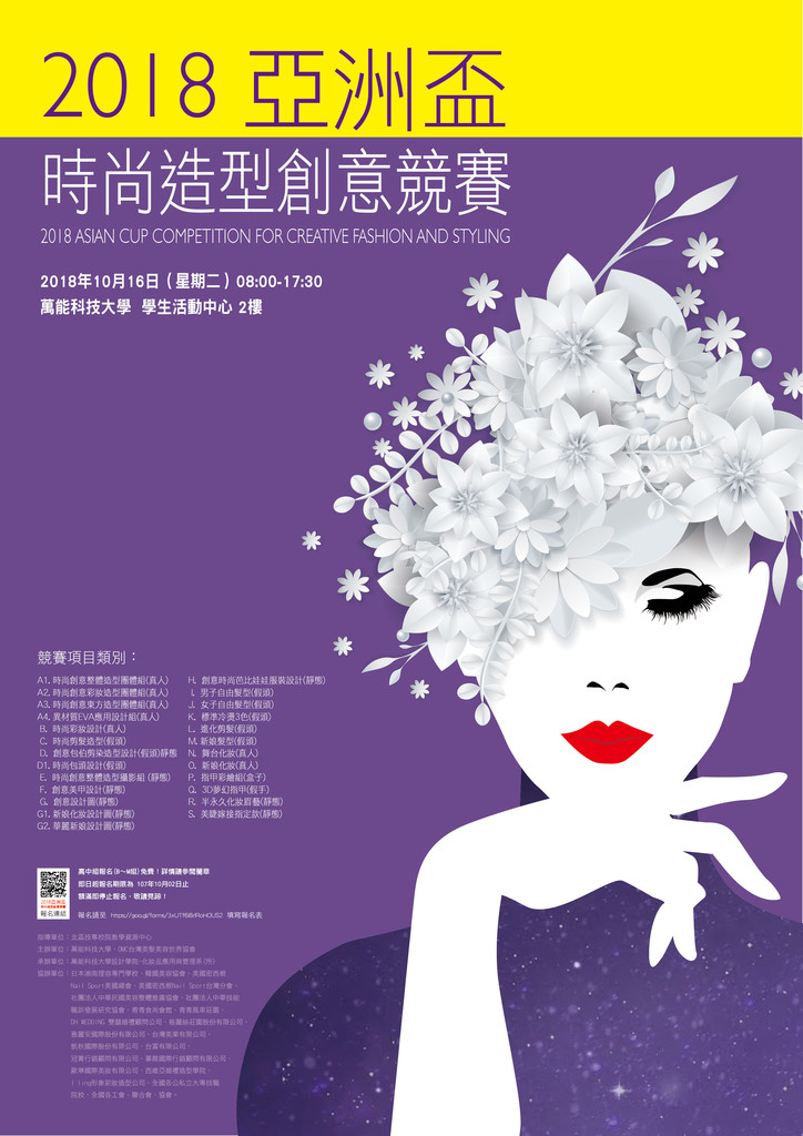 萬能科技大學設計學院、化妝品應用與管理系(所)謹訂107年10月16日(星期二)舉辦「2018亞洲盃時尚造型創意競賽」。