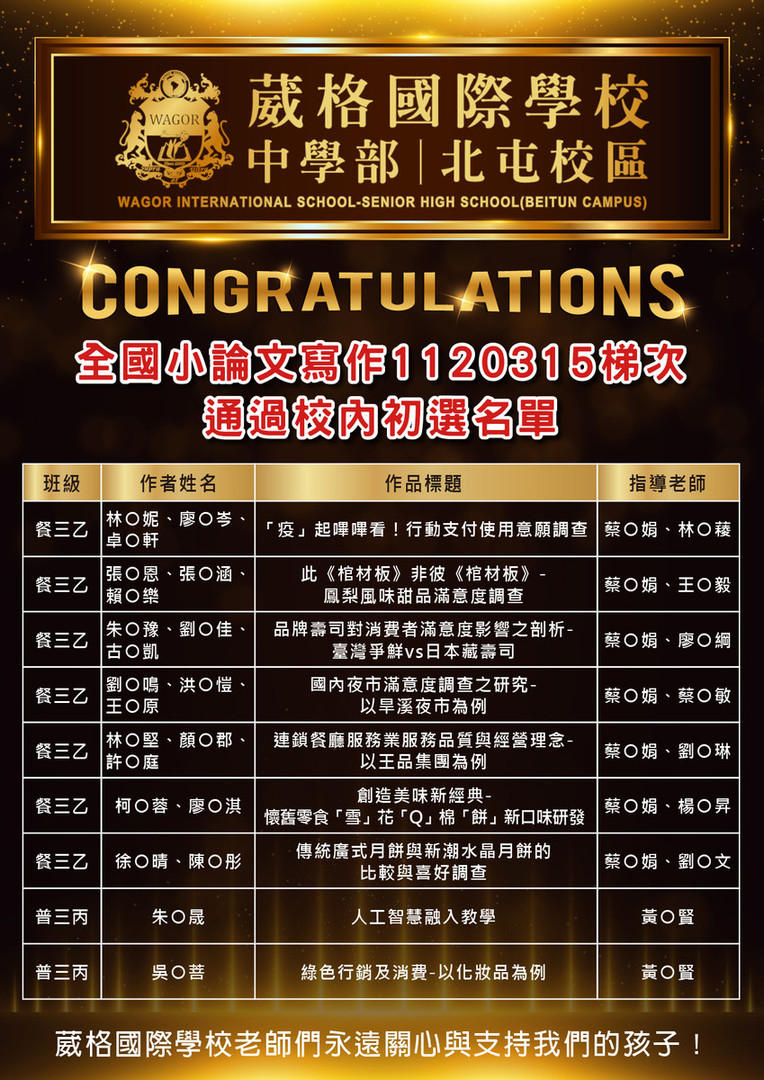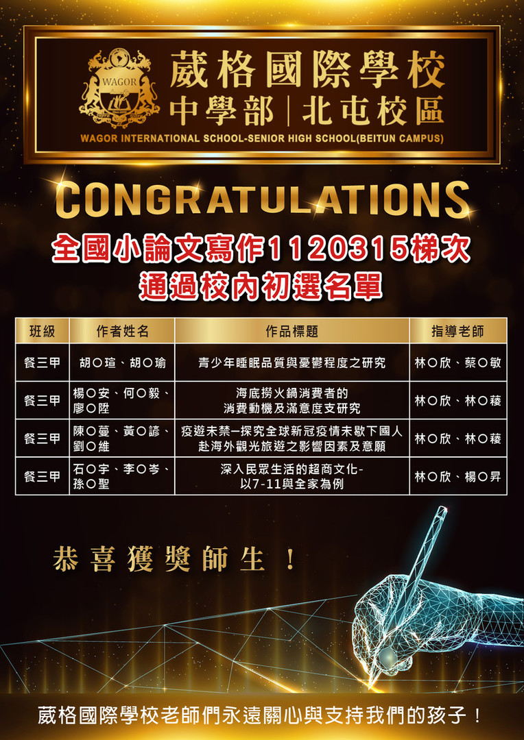 全國小論文寫作1120315梯次 校內通過初選 名單