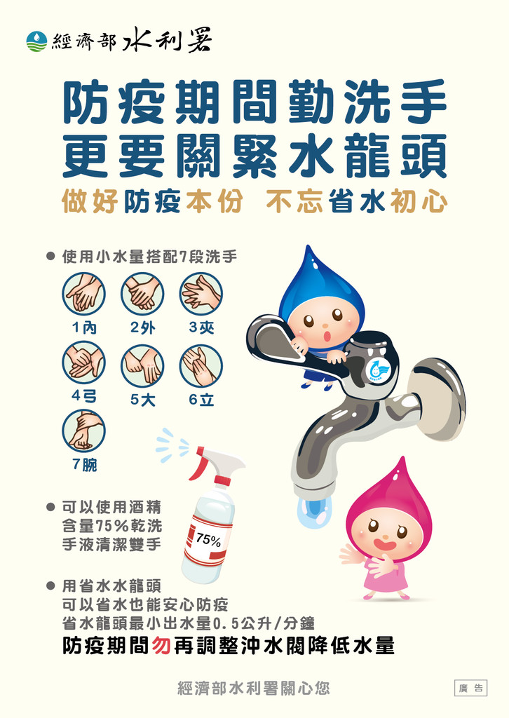 四、另經濟部水利署已完成Q版節約用水宣導影音文宣,相關網址為https://reurl.cc/VX4WoN,請學校協助宣導;另該署亦可免費提供相關節水宣導文宣品(如宣導折頁、貼紙及磁鐵等),歡迎逕向該署索取(聯絡電話:02-89415087,施威全先生)。