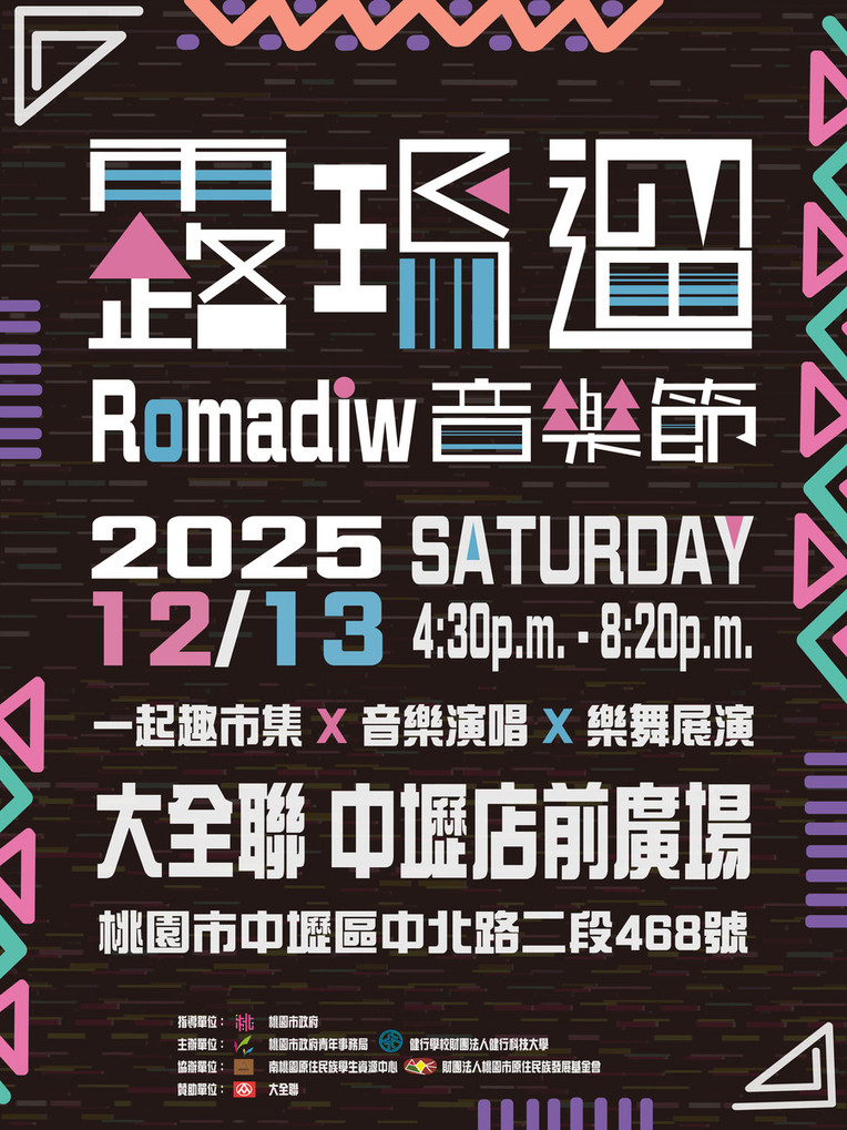 一、為促進本市原住民族大專生的文化交流與青年連結,由大專校院與本局共同策劃「Romadiw 音樂節」,活動以音樂與市集形式呈現,結合原住民族學生成果發表,使青年透過音樂、創作與互動市集展現多元文化能量,並彼此學習、交流與分享原住民族文化之美,亦推動全民原教理念之實踐。